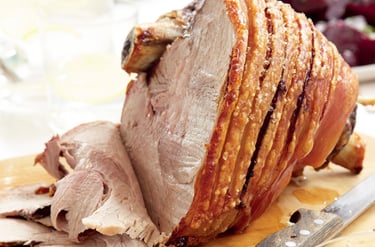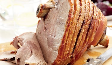 Enjoy a tender and flavorful slice of pork shoulder or leg, expertly cooked to perfection, offering a juicy and succulent taste that's perfect for any meal.